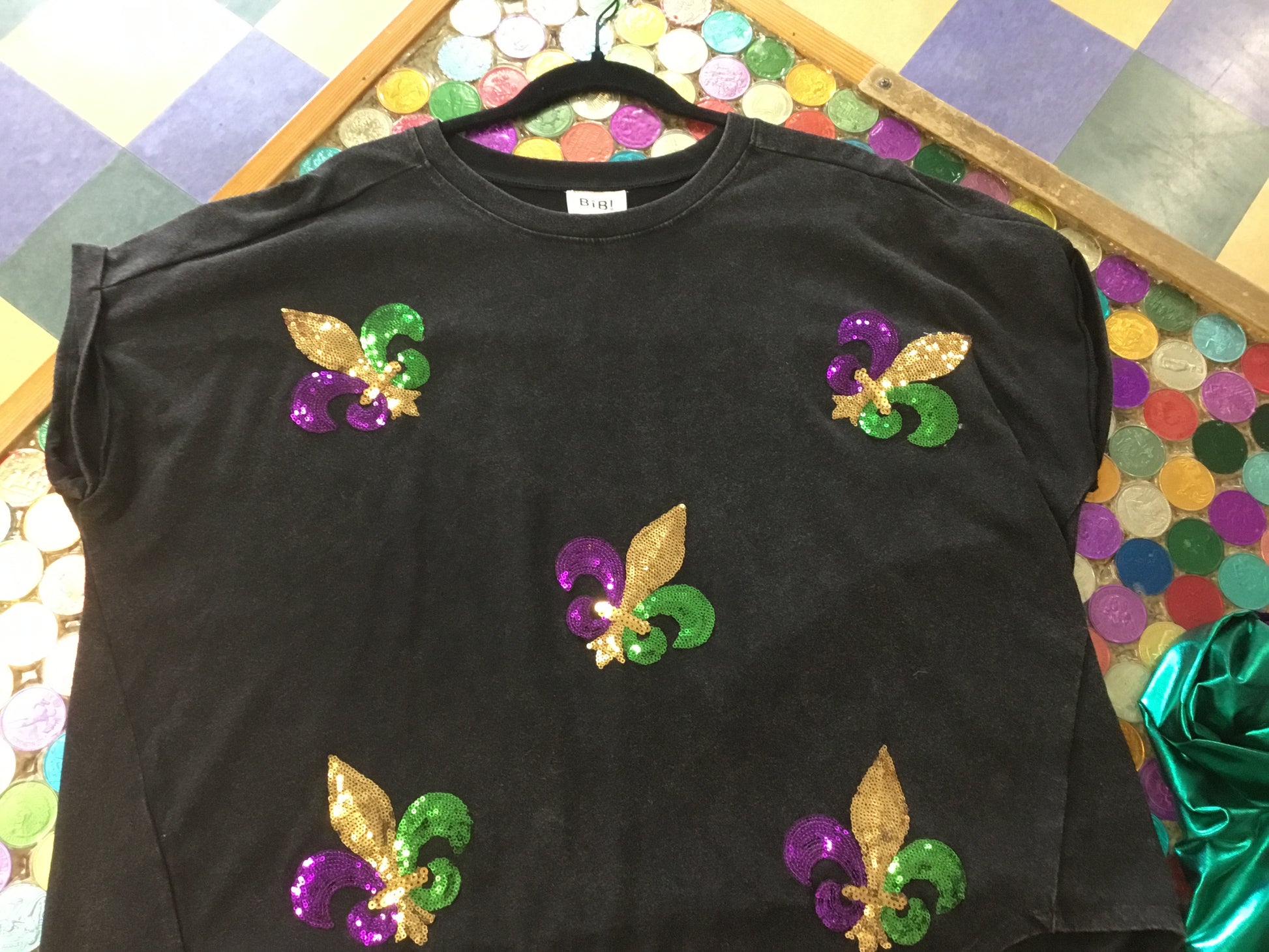 PURPLE OR BLACK W/FLEUR DE LIS SEQUIN PATCHES