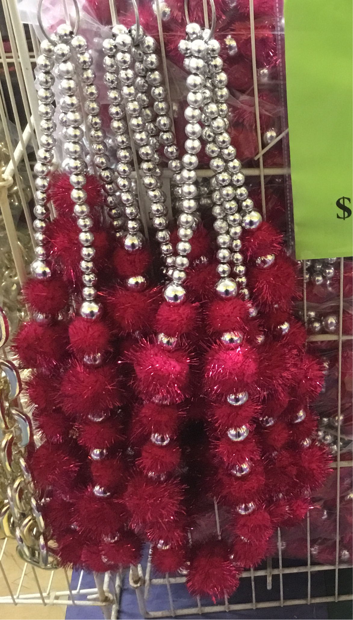 TINSEL POM POM BEAD HOT PINK