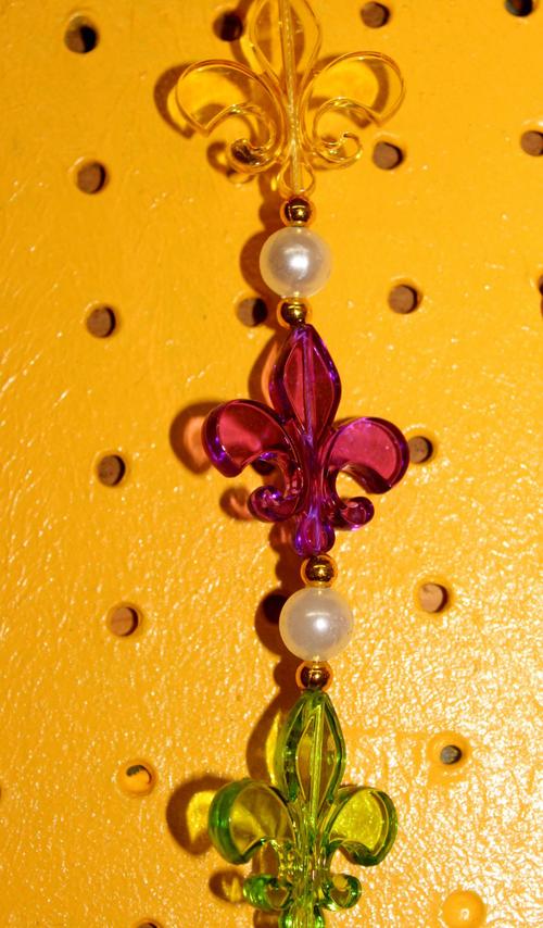 WHITE PEARL W/PURPLE, GREEN, AND GOLD FLEUR DE LEIS